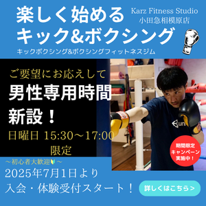 ボクシング・キックボクシングは言わずと知れたダイエットやボディメイクに適したトレーニングです。 脂肪燃焼効果はもとより、キレイなボディラインを手に入れられます。パンチの打ち方、キックの蹴り方一つでもしっかり理論があるので、Karz Fitness Studioではその基本となる機能解剖学、運動生理学をもとに、当クラブオリジナルメソッドにて指導をさせていただいております。キレイでしなやかな理想の体を手に入れられます。